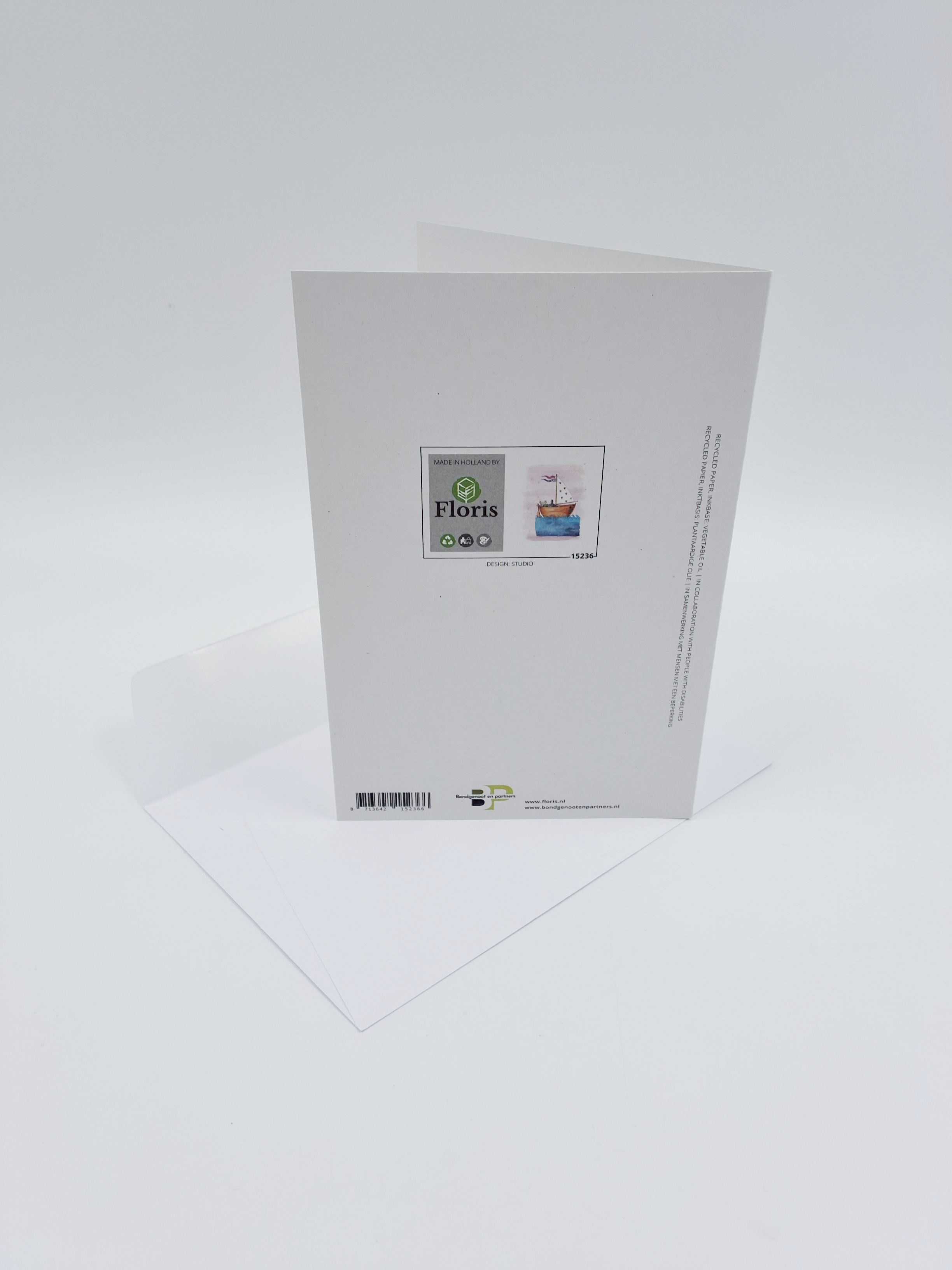 Deze wenskaart is iets groter dan een standaard wenskaart en heeft geen plastiek verpakking. Elke kaart komt met een passende envelop.