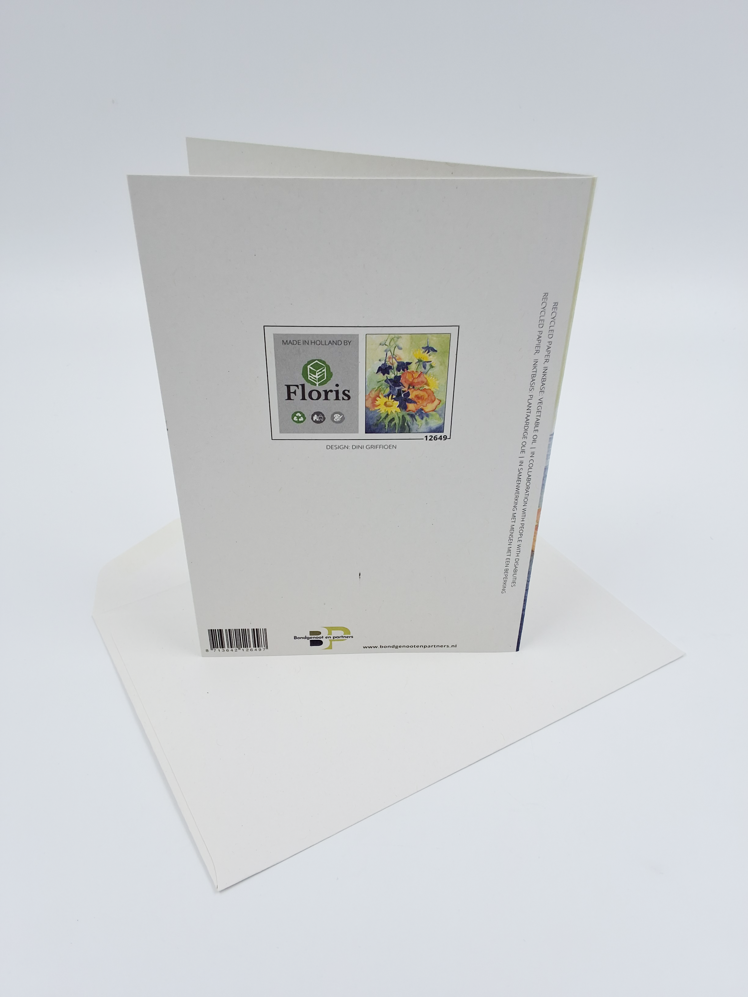Onze wenskaarten zijn gemaakt van gerecycled papier en bedrukt met inkt op basis van plantaardige olie.