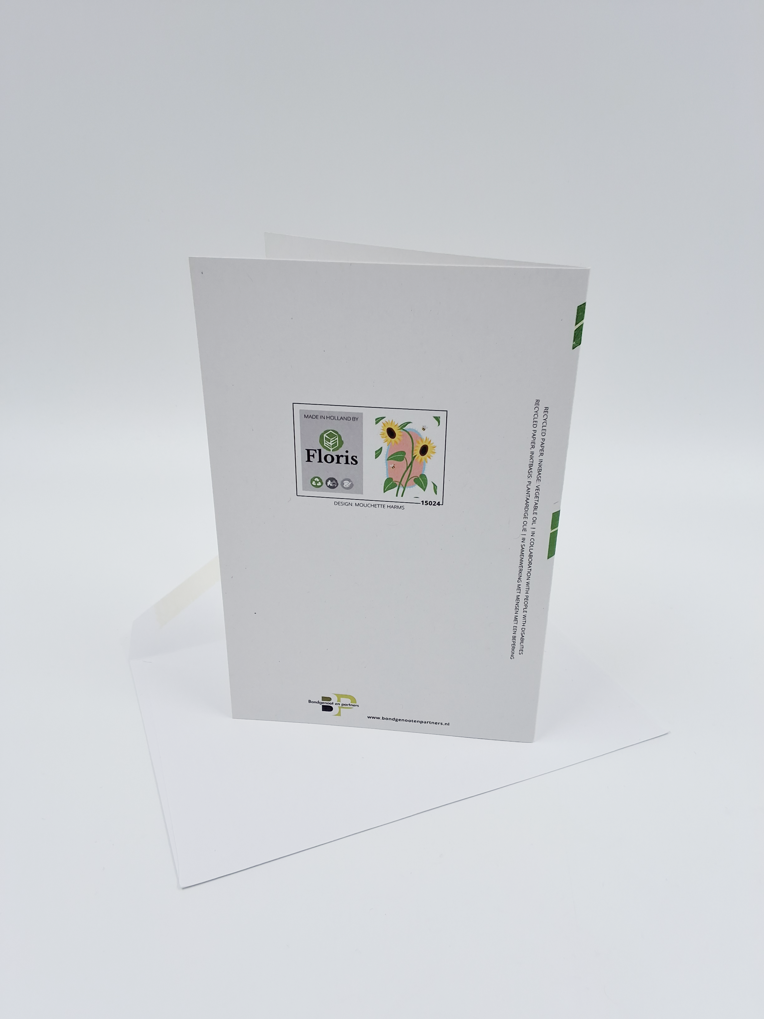 Onze wenskaarten zijn gemaakt van gerecycled papier en bedrukt met inkt op basis van plantaardige olie.