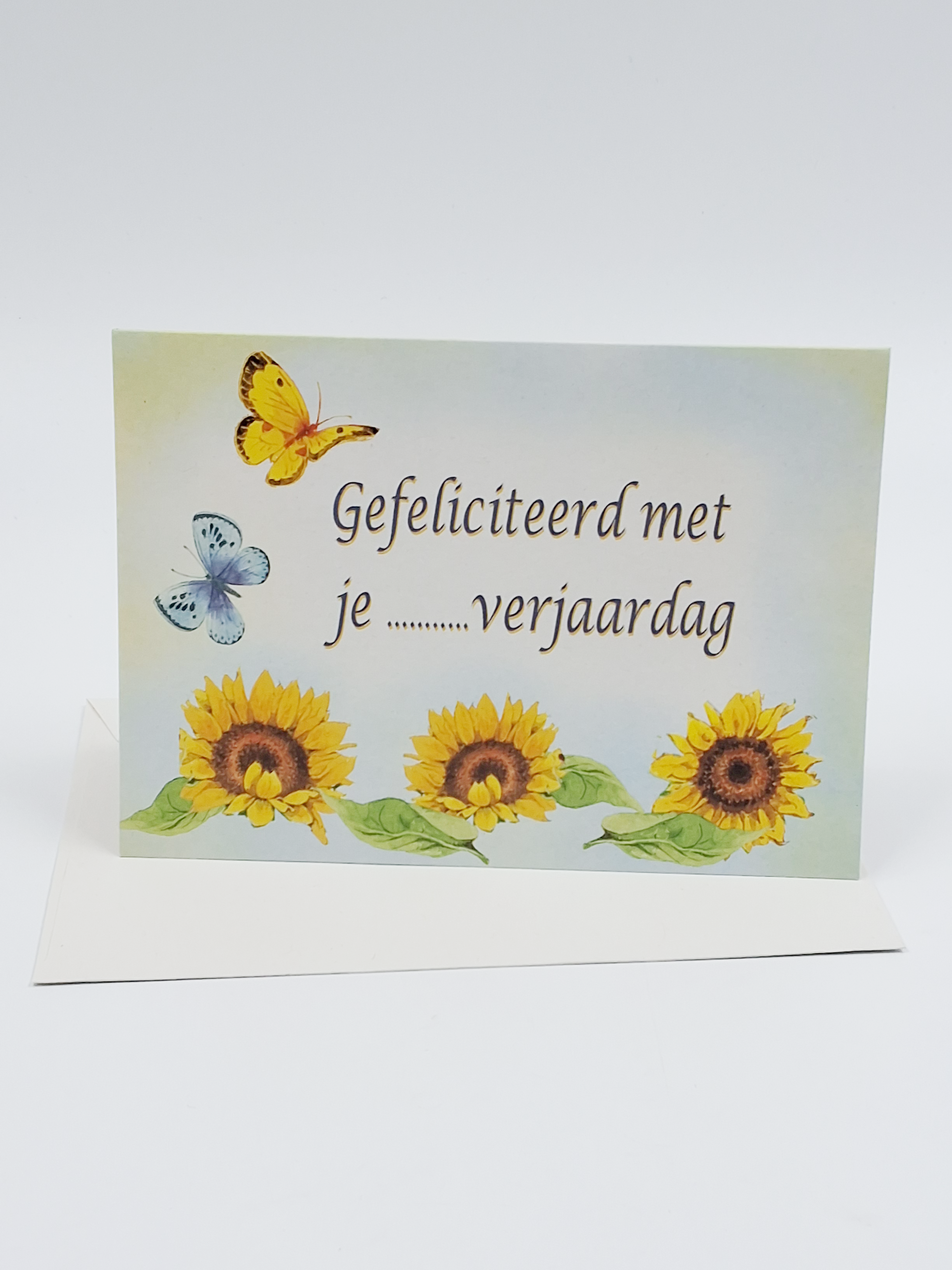 Wenskaart zonnebloemen vlinder, gefeliciteerd met je ... verjaardag