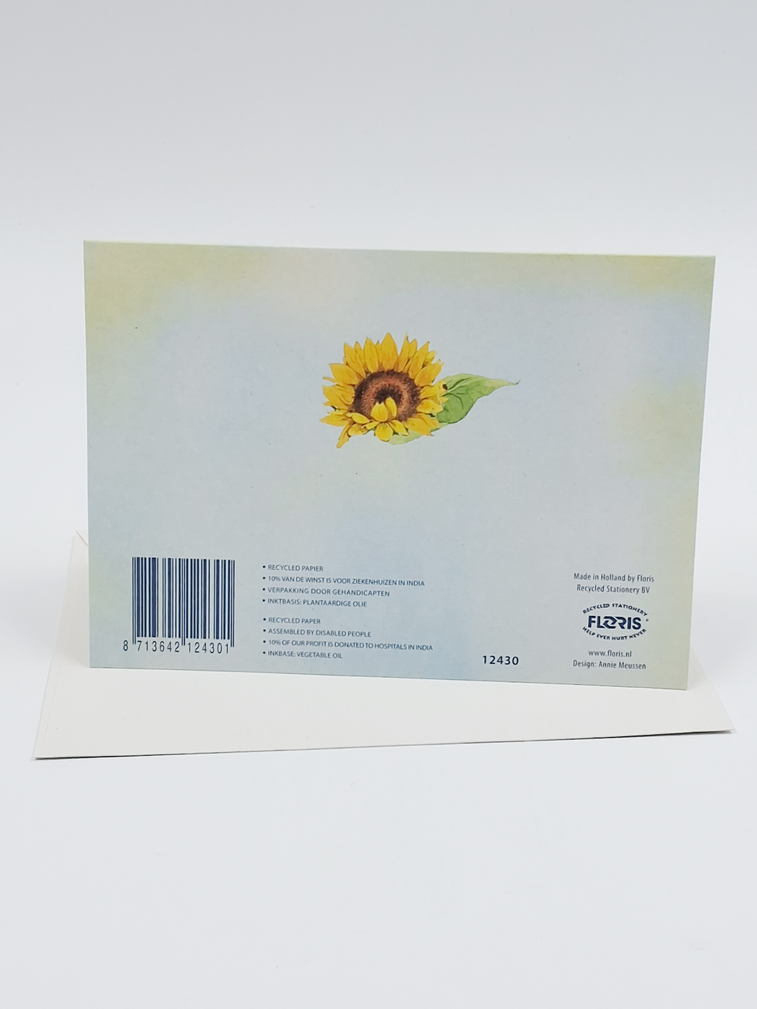 Onze wenskaarten zijn gemaakt van gerecycled papier en bedrukt met inkt op basis van plantaardige olie.