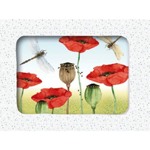 Wenskaarten doosje 5x klaprozen libellen (F12224)